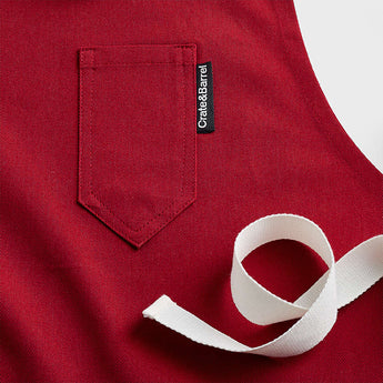 Dressed up and ready for the holidays, Joan Anderson's delightful reindeer pose on our wintry apron. The snow-white caribou poke out of the apron's pocket, embroidered on cherry red organic cotton and bundled up in red and green striped scarves. Waist ties and an adjustable neck provide a comfortable fit. Ideal for Christmas hosting, the apron infuses your cooking and baking projects with wintry cheer all winter long. Pair with the matching oven mitt and pot holder for a coordinated kitchen.