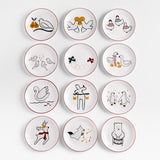 Joan Anderson 12 Days of Christmas Appetizer Plates with Stand, Set of 12