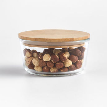 2-Cup Round Glass Storage Container with Bamboo Lid