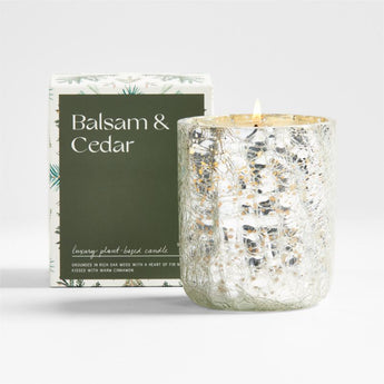 Scent your home with the evocative aromas of the forest. Poured in a glass vessel with a silvery finish that evokes antique mercury glass, this candle brings a touch of wintry beauty to your coffee table, mantel or vanity. The candle fills the room with boreal balsam and oak moss, warm cedar and cinnamon, and invigorating eucalyptus. Packaged in a decorative box, this small candle makes a fantastic all-purpose gift to keep on hand throughout the holidays.