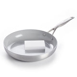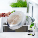 Tackle carbonizationthose sticky spots caused by burned oilon your non-stick cookware with these ingenious sponges. Made of melamine, the pair cleans pans with ease while protecting and restoring the ceramic non-stick finish. Once your cookware looks and performs like new, the sponges clean up easily in the dishwasher