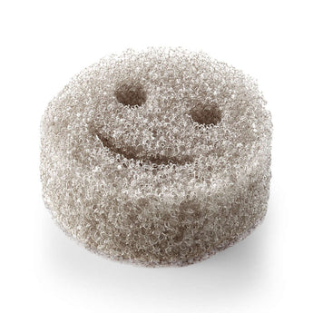 The sponge of the future. Scrub Daddy's unique FlexTexture foam softens in warm water for general cleaning but stays firm in cold water for serious scrubbing, all with a cheerful grin. Slide spoons and forks into the smile to quickly clean them on both sides, and use the eyes to get a good grip for wiping down the interiors of tall glasses. The spiky hair provides extra scrubbing power. Resistant to stains, mold and odors, the innovative sponge cleans up thoroughly in the dishwasher whenever needed. Scrub Daddy cleans your dishes, kitchen and beyond in a modern grey exclusive to Crate and Barrel.