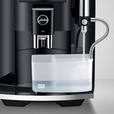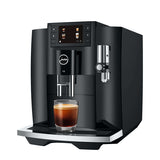 Now better than ever, the Jura E8 espresso machine is incredibly easy to use, combining state-of-the-art technology with a sleek modern design for delicious coffee. Prepare 17 coffee classics and specialty drinks at the push of a button for the same high quality you'd expect from a fine coffee bar. Thanks to the integrated coffee grinder, beans are always freshly ground, while an advanced brewing system ensures optimal extraction. It's simple to choose your favorite coffee drink with an enlarged and easy-to-use push-button display. To tailor Americanos to your liking there's a dedicated waterspout as part of the optimized fluid system. For those who like a more intense brew, the Extra Shot peps up cappuccinos or lattes. There's even one-touch cleaning of the milk system to keep your E8 primed and ready for your next coffee drink. Available in sleek black, this top-notch espresso machine delivers professional results for the home barista.