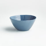 Striking a contemporary look with organic overtones, our Mercer bowl features a slim silhouette with a freeform rim and a finely "hammered" surface that ripples the beautiful blue denim glaze. Smooth enough to not harm tables, the unglazed ceramic bottom gives each piece an artisanal look.