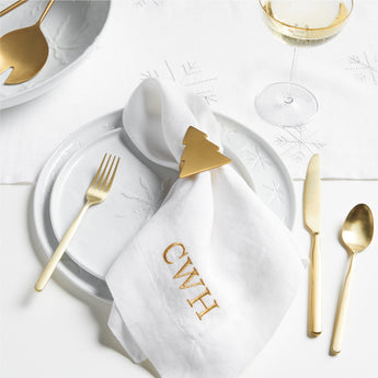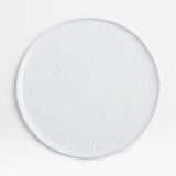 Modern snowflakes add the perfect holiday accent to the beautiful simplicity of our Mercer dinnerware. Circling the perimeter of the coupe-shaped plate, debossed snowflakes complement the freeform rim and finely "hammered" surface that ripples the light. Smooth enough to not harm table surfaces, the unglazed ceramic bottom gives each dinner plate an artisanal look.