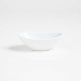 Sloped oval dish in bright white porcelain is sized to perfectly accommodate sauces, dips, condiments or individual servings of appetizers or desserts. The petite, gracefully curved bowl, a Crate and Barrel exclusive, pairs beautifully with our bright white porcelain dinnerware and serving pieces. Oven-safe to 350 degrees, our mini oval dish is perfect for presenting warm sauces and treats.