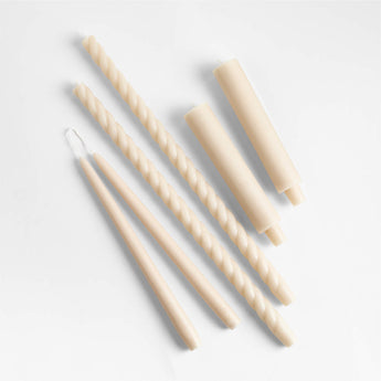 Tall and twisted, this pair of tapers brings drama to tables both chic and casual. These elongated candles are an elevated take on a decorating essential, gracefully spiraled to create subtle texture. A warm and classic hue that reminds us of vintage paper, the creamy off-white candles complement the modern romantic pieces in our exclusive Laura Kim collection.