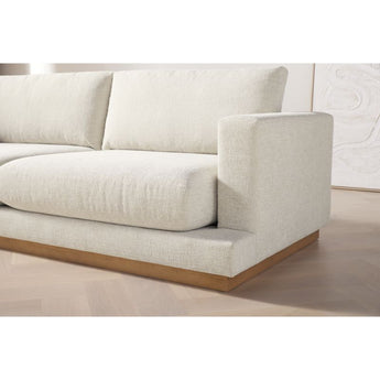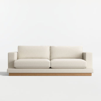 While you sink into the laid-back comfort of Tidal, enjoy the feel-good vibes of knowing that the sofa's upholstery includes yarn made from recycled ocean plastic. The durable, easy-care fabric indulges with a soft micro-chenille weave that perfectly complements the sofa's deeply cushioned seat and pillow backs that provide just the right amount of recline. Set-back arms and an exposed seat deck create a stepped look, and the ash veneer plinth base lets the sofa float in a room. Though Tidal's stocked upholstery contains a percentage of upcycled ocean plastic, it has a very soft and inviting hand that begs to be touched.