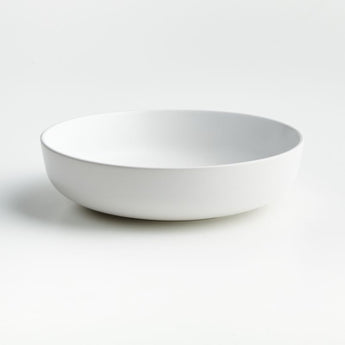 The clean coupe shape of our Wren low bowl complements the perfectly creamy glaze. Finished in matte white, the dish sets a modern table with its confident curves in a shape ideal for salads, pastas and hearty stews. For a beautifully cohesive look, pair the oven- and dishwasher-safe low bowl with the matching salad plate, dinner plate, cereal bowl and mug. Part of our Wren dinnerware collection, our matte white low bowl is a Crate & Barrel exclusive.