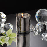 - About the vessel: The black-reflective specialty-glass vessel features a reflective-gold interior that glistens more brightly as the candle burns down. Festive yet modern, it enhances any space with an elegant style.