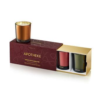 Autumnal aromas abound with this limited-edition trio of Petite Scented Candles offering an abundance of the warm and comforting scents of the season. Attractively packaged in a festive gold box wrapped in a decorative sleeve imprinted with an elegant, gift-ready, ribbons-and-bows design