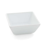 Deep, angled dish is handcrafted of white porcelain and sized to perfectly accommodate sauces, dips and condiments. The square 4-ounce bowl, a Crate and Barrel exclusive, is a petite essential. Place one at each guest's place to hold sweet or savory sauces for potstickers, grilled meats, fresh fruit and shortbread cookies.