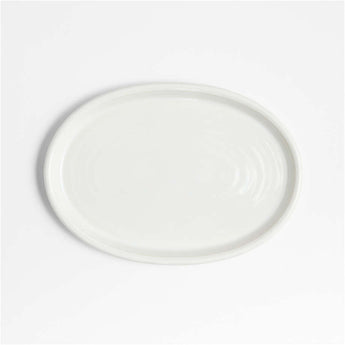 Oval-shaped to hold a sandwich and a matching soup bowl, this white plate is ribbed with the look of hand-thrown pottery. Crafted by skilled artisans in Portugal, the plate is part of our classic Farmhouse collection distinguished by its bold rims and sturdy feel.