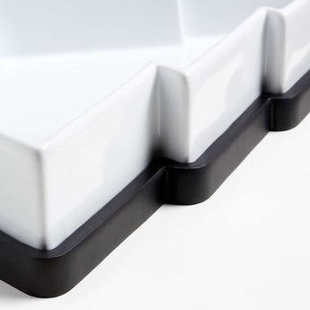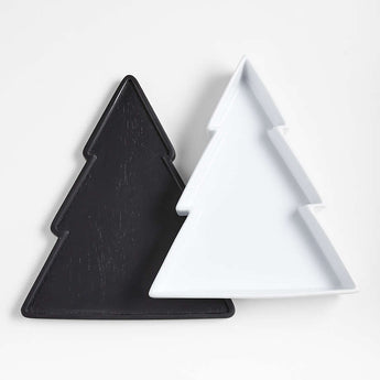 Our customer-favorite oven-to-table collection gets a wintry update with this modern tree-shaped set. Hand-glazed in snowy white, the ceramic baker goes from oven to table where it nestles in the black-finished wooden trivet. The festive set serves hot dips, desserts and casseroles with seasonal flair, from weeknight winter dinners to Christmas feasts.