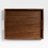 Lovely serving drinks or corralling snacks on an ottoman, this large rectangular tray showcases the warm color and beautiful grain of walnut-finished acacia wood. The modern wood tray is styled with rounded cutout handles and a linear, functional profile. Use it to present breakfast in bed, pass around appetizers or corral mail on an entryway table.