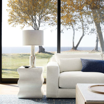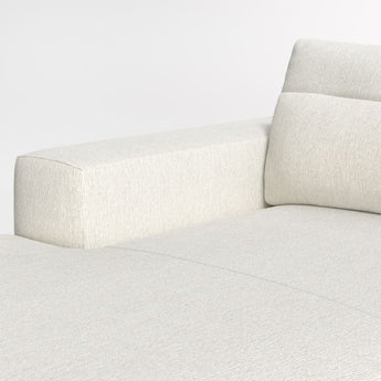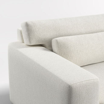 Years in the making, we pulled in customer-favorite design elements to create our Retreat sectional, a plush new hangout spot with a clean, modern look. The combination of right-arm sofa and left-arm chaise has soft-yet-supportive seat cushions and lumbar pillows that remove for a deeper, more loungey sit. Extra-wide arms provide a spot to park a book, tablet or bowl of popcorn, and T-shaped back cushions snuggle in nicely to keep the look clean and current. Textural and forgiving, the upholstery fabric we love is Serenea beach-cleanable, family-friendly boucle with a sculpted weave that reads timeless and contemporary.