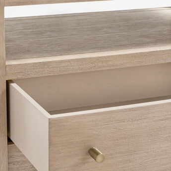 - Metal pulls with brass finish