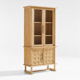 Our Honore tall cabinet delivers "wow" along with generous storage and display space for dining or living room essentials. Inspired by vintage designs, the oak cabinet abounds with extraordinary craftsmanship seen in subtle ridge detailing, stretcher bar supports and gloriously coffered cabinet doors. Glass-paned doors lead the eye upward, showcasing glassware, books or curios. A light ceruse finish lends freshness and a contemporary feel to this impressive storage cabinet.