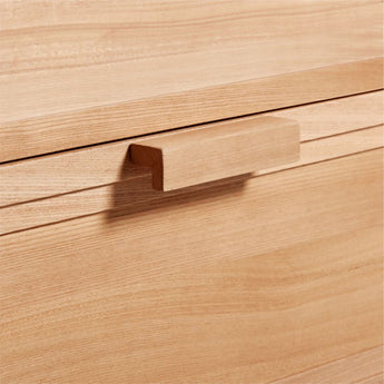 Calypso opens up living or dining room room storage with a light and airy look. Consisting of three drawers and a wide open shelf, the large console provides closed storage and display space. Stepped detailing and horizontal pulls add linear design notes, while wirebrushing and a natural finish bring out the beautiful elm grain.
