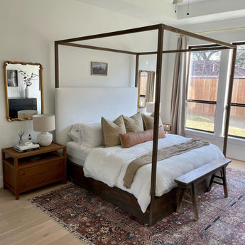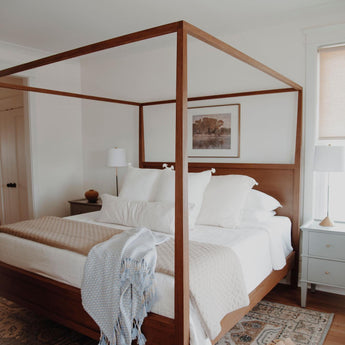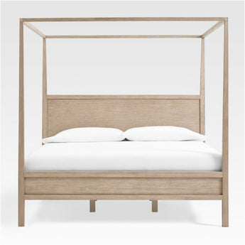 Keane streamlines the traditional canopy bed into an open, airy cube of beautiful mahogany and meranti woods with a natural finish. Architectural but never formal, the canopy bed features ever-so-slightly tapered posts anchored by simple panel head- and footboards. Our best-selling Keane collection is a Crate & Barrel exclusive.