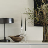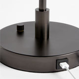 Inspired by the Prairie style of architecture and decor, our Zain table lamp with USB port uses strong horizontals to create bold silhouettes in dark grey. The short cylindrical shade and thick base create horizontal lines intersected by the slim vertical tube. The lamp casts a lovely glow on the steel's pewter finish. Featuring a USB port in the bases for convenient charging, our Zain table lamp is a Crate & Barrel exclusive.