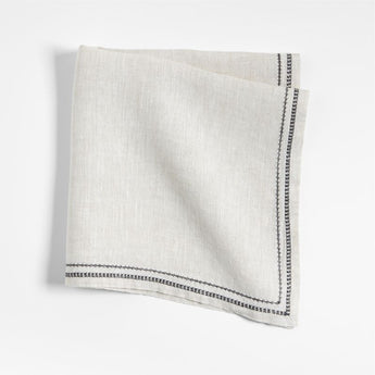 A double band of black embroidery borders this all-linen dinner napkin with a bit of contrast and modern pattern. The naturally toned linen napkin pairs effortlessly with our modern dinnerware and cleans up easily in the washing machine and dryer.