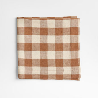 Walnut brown and creamy natural lines intersect in a modern buffalo check napkin with homespun charm. Our sustainable linen napkin unfolds to a lavish 22-inch square with generous hems. Prewashed for extra softness, the machine-washable cloth is finished with mitered tailoringdiagonal seaming that creates crisp corners. We love the way this buffalo plaid napkin pairs with our natural-hued artisanal dinnerware to set a warmly welcoming table.