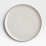 Modern and restrained in form, expressive and rustic in glaze. The artisan's hand is authentically reproduced in this stoneware pattern designed exclusively for Crate and Barrel by ceramic artist and designer Kathy Erteman at her 18th Street studio in New York City. A contemporary matte black exterior contrasts the rustic beauty of a shiny, speckled white glazed interior ringed with the subtly raised spiral associated with hand-thrown pieces. A raised clay rim features a sandy glaze that evokes the feel of exposed terra cotta. To capture the artisan look of this dinnerware, Erteman modeled prototypes to true scale by hand with her original glazes as reference for production. In the words of the designer, " Width hen making tableware, I consider design and the rigors of daily use. The spirit of my hand in these pieces is modest, to harmonize with and act as a support to the prepared ingredients."