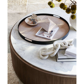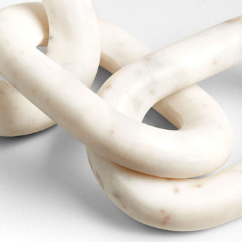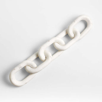 Draped across a mantel, strewn on a desk or coiled in a centerpiece bowl, our marble chain showcases surprisingly soft curves. Grey-veined white marble shapes five links looped together. Our decorative marble chain is a Crate & Barrel exclusive.