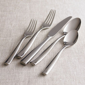 Clean, sophisticated design sets a fashionable table. Simple and striking, this polished flatware is compatible with a wide variety of dinnerware. Well-balanced and comfortable in the hand, with a smooth, bright mirror finish.