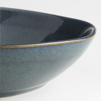 Our bestselling Marin serveware and dinnerware, now in a glossy blue glaze inspired by the Italian coastline of the Mediterranean Sea. The reactive, brown-flecked finish perfectly suits this artisanal low bowl. Hand-shaped with organic curves and subtle antiquing along the rim, each stoneware bowl will have its own distinctive look. The timeless, livable slate blue harmonizes beautifully with the rest of our Marin collection we especially love it with the speckled, sand-hued dishes.