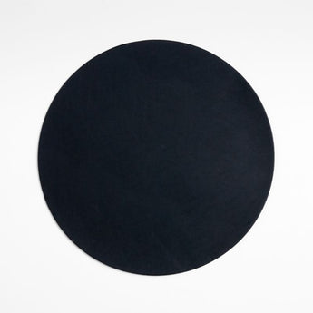Perfectly round and perfectly faux, our placemat replicates the luxe look of leather. Tinted black and flipping to white, the double-sided placemat sets a sophisticated and table-saving foundation for any place setting. Made of responsibly sourced materials, the Rizzo faux leather placemat is a Crate & Barrel exclusive.