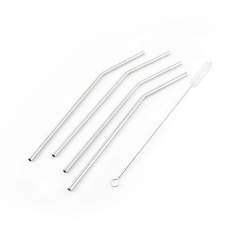 • Set of four stainless steel straws with a bent design for easier drinking. Includes a cleaning brush with a metal handle and soft bristles, perfect for keeping the straws hygienic and in excellent condition. Reusable, eco-friendly, and durable — ideal for both hot and cold beverages