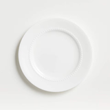 Inspired by the simple elegance of a pearl. Beautiful embossed dots on white bone china create a durable dinnerware with a timeless appeal.