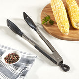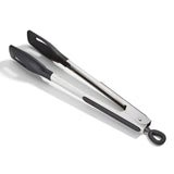 - The versatile 12" Squared Head Silicone Tongs are perfect for tossing salads, flipping cutlets, and safely retrieving items from boiling water! These tongs feature a comfortable soft-grip handle and a convenient locking pull tab for easy storage. Crafted from heavy-gauge stainless steel, they boast a squared edge silicone tong head that effortlessly slides under food while cooking and serving. The tong heads have silicone teeth that grip food securely while in use and are heat resistant up to 450°F. These Cuisinart® 12" Squared Head Silicone Tongs keep hands away from the heat and are dishwasher safe for easy cleanup