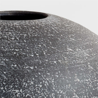 Master potters transform simple clay into a dark and dramatic vase. Thrown, finished and painted by hand, the terracotta vessel features a textured surface enhanced by a stippled black finish. The generous curves of the vase swell from a slim foot to shape a striking silhouette. Place our exclusive Ophelia black round vase on a mantel or sideboard where its artistry can be appreciated, or use it to present real, dried and faux botanicals.