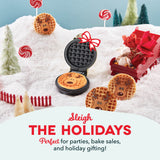Santa Claus is coming to town! Sleigh holiday hosting with 4” mini waffles in a ready-to-decorate Reindeer pattern. Santa Claus is coming to town! Sleigh holiday hosting with 4” mini waffles in a ready-to-decorate Reindeer pattern. Santa’s Little Helpers will love decorating these merry minis—ideal for seasonal celebrations, holiday bake sales, and all-around making spirits bright! Dual nonstick cooking surfaces release waffles cleanly for photo-ready results and no-mess cleanup. As compact as it is cute, a built-in cord wrap at the base makes for easy drawer storage. And the included Recipe Guide is filled with a sleigh-full of inspiration to help you make it homemade for the holidays!