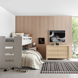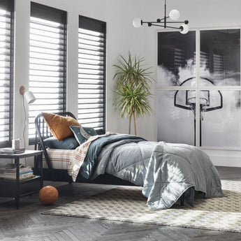 Our Pixi kids' sconce puts a playful spotlight on modern design. Futuristic and fun, this plug-in wall light washes walls with ambient light. Its posable metal head looks side to side to point the light where you need it most, and it's finished in decor-friendly matte white to complement the wood back plate. Ours exclusively, this colorful accent light transitions from nursery to big-kid's room to shared family spaces throughout the home.