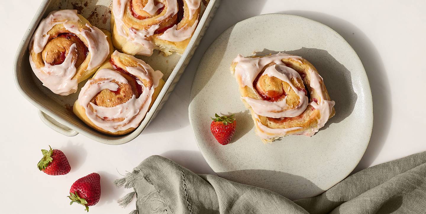 Esta receta de rollito de tarta de fresa es pura dulzura y sabor veraniego. Una masa con infusión de vainilla envuelve un doble relleno de fresa (mermelada y fresas frescas), se hornea hasta quedar dorado a la perfección y está cubierto con un irresistible glaseado de queso crema y fresa. ¡Es el rollito más espectacular que jamás probarás!