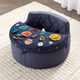 Con nuestra Silla de Actividades Deep Space Baby en tu órbita, la hora del juego siempre está lista para despegar. La bandeja extraíble de la silla tiene mucho para mantener a los curiosos cadetes activos y estimulados, desde un espejo y un sonajero hasta chirriadores. Un asiento de algodón facilita los cómodos viajes por el cosmos imaginario, mientras que los diseños estelares de Michelle Romo con temática espacial son una verdadera maravilla.