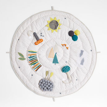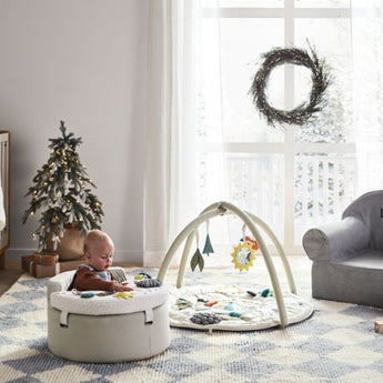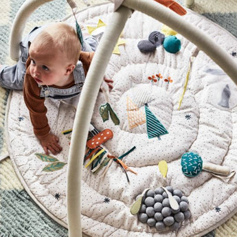 Designed to help babies grow and develop in their first year, our Busy Baby Activity Gym Play Mat has plenty to keep your little one, well, busy. Four nature-themed rattles and lots of plush textures and interactive elements encourage babies to explore, play, learn and hit new milestones from tummy time to sitting independently. Use the mat on its own or with the padded bar to create a fun mobile. Pair with our matching Busy Baby Activity Chair to make a wonderful gift set.