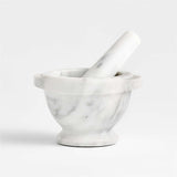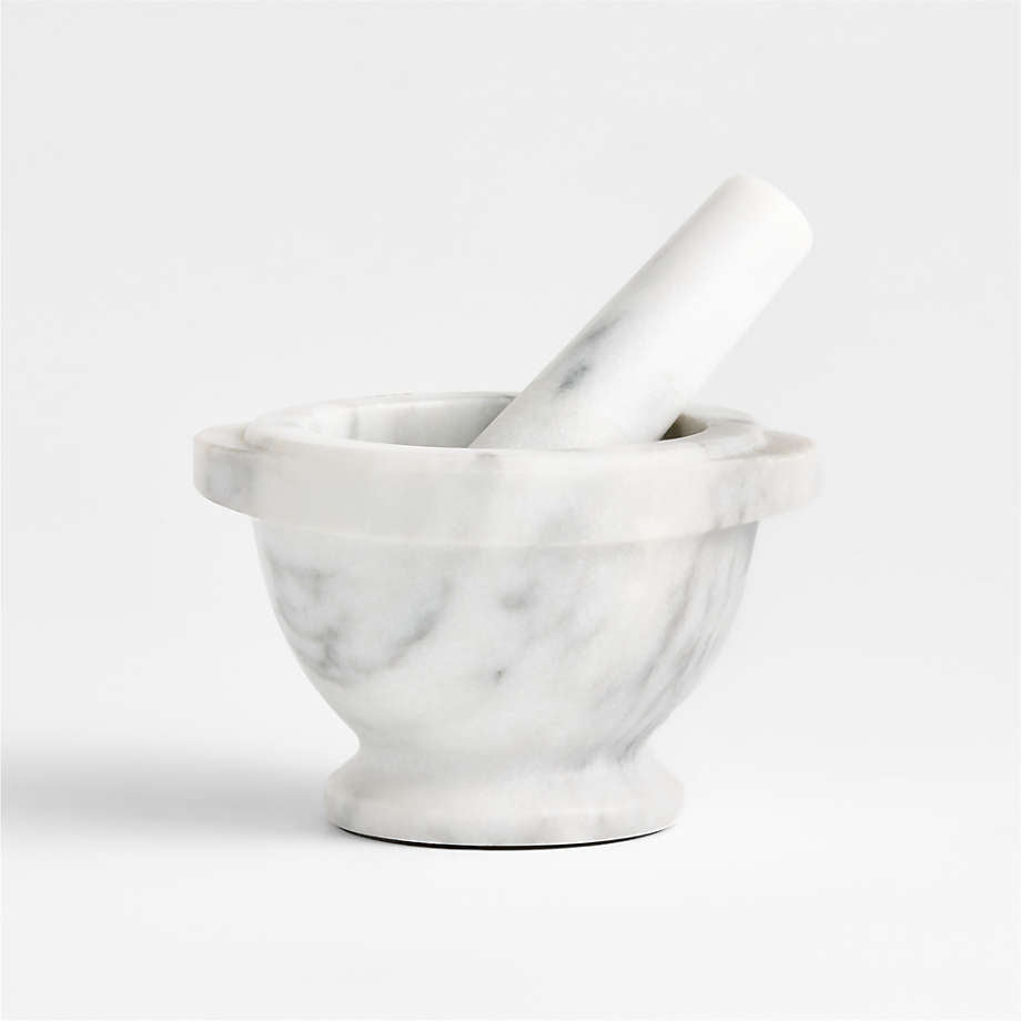 El clásico mortero culinario está elaborado en mármol blanco con vetas grises para triturar y mezclar fácilmente especias y hierbas, granos de pimienta, ajo, nueces, semillas, mantequillas y más. Machacar las hierbas frescas y la menta ayuda a liberar los aceites naturales para lograr un sabor más completo y robusto. Debido a que el mármol es un producto natural, se producirán variaciones de vetas y colores; vea imágenes adicionales para ver ejemplos.
