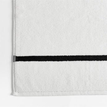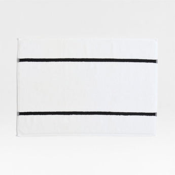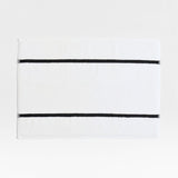 Nuestra colección de toallas de esmoquin embellece tu baño con un look elegante y sofisticado. Inspirada en la ropa formal atemporal, dos rayas negras bordadas adornan esta alfombra de baño de algodón orgánico. El bordado en tinta contrasta con la tela de rizo blanca brillante y densamente tejida, creando una alfombra lujosa de aspecto sofisticado y tacto irresistiblemente suave y absorbente. Combínala con las toallas a juego para un baño impecablemente diseñado y siempre a la moda.