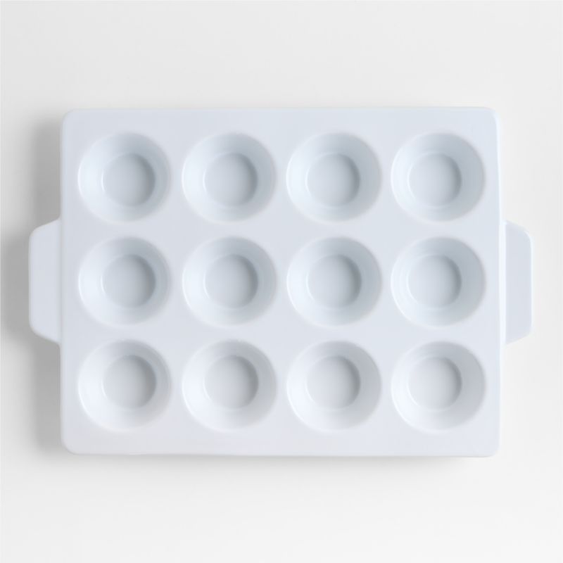 Recurrirás una y otra vez a nuestras impecables fuentes blancas para comidas compartidas, cenas y reuniones festivas. Esmaltadas a mano por artesanos expertos, estas fuentes de cerámica blanca hornean una docena de muffins, cupcakes o mini quiches y se limpian fácilmente en el lavavajillas. Para completar su diseño clásico y atemporal, sus discretas asas facilitan su transporte del horno a la mesa o de la cocina a la comida compartida.