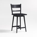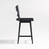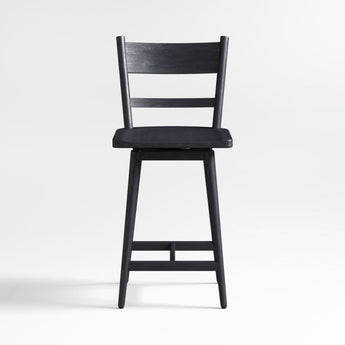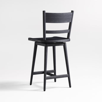 El encanto sencillo de Arno reside en sus sutiles detalles de diseño. La ligera curva del respaldo de listones proporciona soporte para la espalda, mientras que el asiento esculpido garantiza una posición cómoda en un mostrador o una mesa de comedor alta. Su giro de 180° facilita el movimiento gracias a un mecanismo de retorno que devuelve el asiento a su estado original para mantener un aspecto impecable. El cepillado de alambre y el acabado negro ebonizado realzan la veta de este versátil taburete de mostrador de madera noble, exclusivo de Crate & Barrel.
