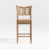 La humilde silla de junco destaca por su silueta imponente y su intrincado tejido en Forge. El roble rojo conforma la estructura de líneas limpias del taburete de bar, alrededor de la cual el junco marino natural crea un asiento de tejido de mimbre y un respaldo de intrincado tejido. Con sus ricas variaciones naturales de tono, el junco marino envejecerá maravillosamente con el tiempo. Atractivo desde cualquier ángulo, el perfil esbelto del taburete y su tejido ligero iluminan el aspecto de mesas altas de comedor, islas de cocina, mostradores o mesas de bar.