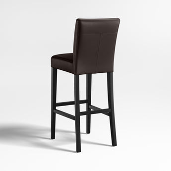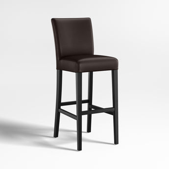 El diseño clásico de estilo Parsons se refleja en nuestros taburetes de cuero Lowe, tapizados en suave cuero bicast con textura granulada en un tono ahumado oscuro. Estos taburetes elegantes y contemporáneos, diseñados especialmente para bares y mostradores, ofrecen un asiento cómodo y espacioso, con un perfil largo y estilizado. La costura doble a caballo refina el asiento y el respaldo, acolchados y firmes, perfectamente proporcionados a las esbeltas patas teñidas en ébano de la estructura. Los taburetes Lowe de cuero ahumado son exclusivos de Crate and Barrel.