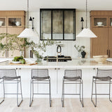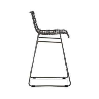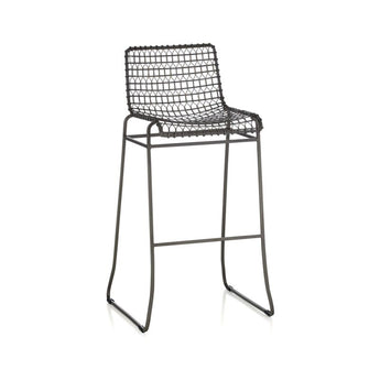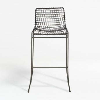 Named for a complex welding technique used to secure non-ferrous metals and copper alloys, our Tig bar stool revels in the contrast of raw metals and the intricate welds that are typically covered with an opaque topcoat. ^ We relied on a team of highly skilled craftsmen who specialize in a kind of wire weaving and welding technique that's been passed along from generation to generation. Entirely handcrafted, each bar stool is made in three stages by teams expert in frame structures, wire patterns for the seat and back and the final welding. Once finished, stools are given a light acid wash bath that results in a grey iron patina and subtle brass weld marks.