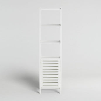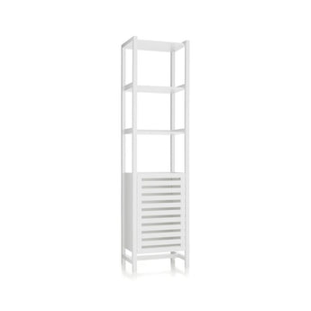 Esta esbelta torre se extiende para guardar toallas, artículos de tocador y accesorios de baño. La puerta de lamas mantiene las pertenencias personales ocultas, mientras que los estantes abiertos mantienen los artículos de uso diario a la vista. ^ Diseñada por Mark Daniel, la Torre de Baño Banya White está hecha de álamo macizo y madera de ingeniería con un acabado blanco brillante. Las puertas se abren a la izquierda o a la derecha, lo que la convierte en una excelente opción para espacios reducidos. La Torre de Baño Banya White es exclusiva de Crate and Barrel.
