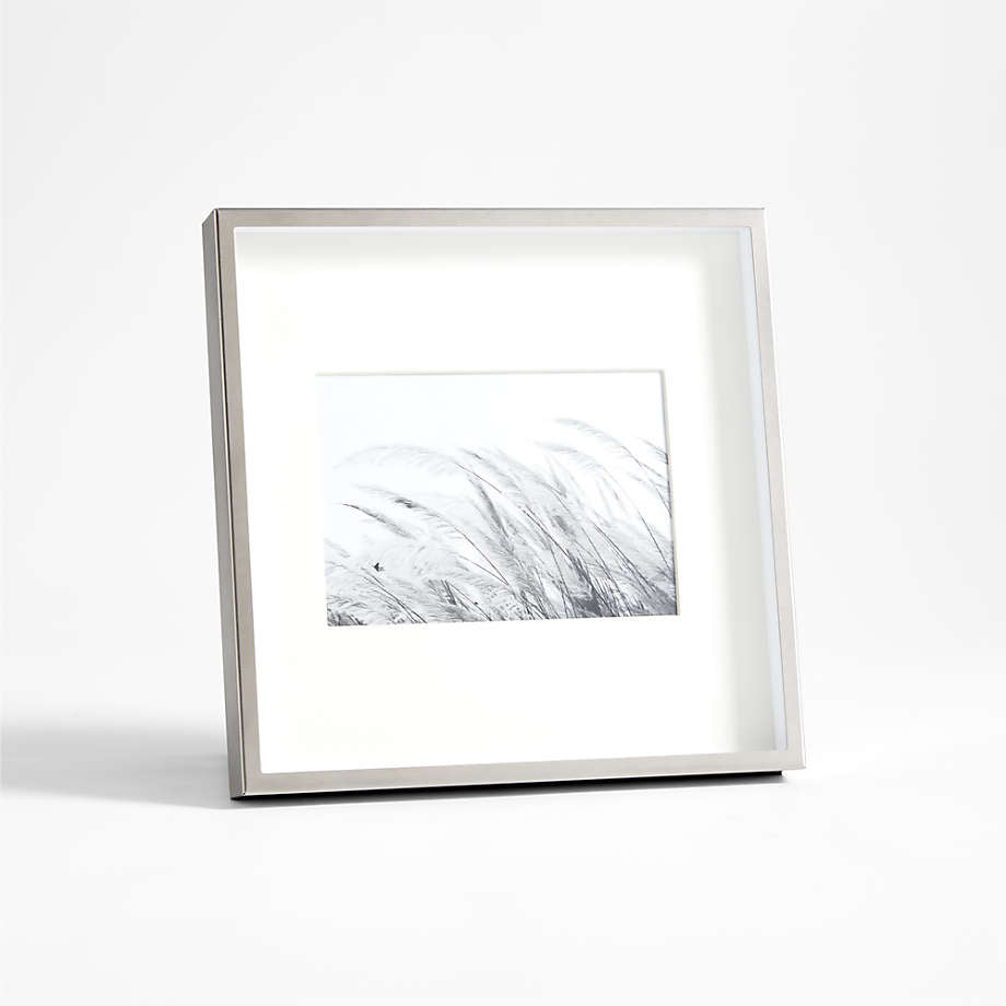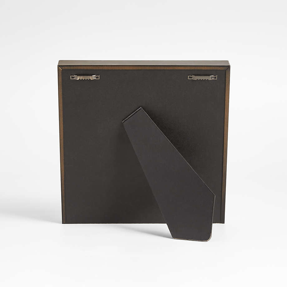 Nuestros marcos de latón cepillado aportan un toque de brillo y dramatismo a las exposiciones de fotos e impresiones con su diseño de caja de sombra y sus grandes paspartús en blanco roto. Exclusivos de Crate & Barrel, nuestros marcos de aluminio con acabado de latón cepillado se pueden exhibir en una repisa, una estantería o una mesa.